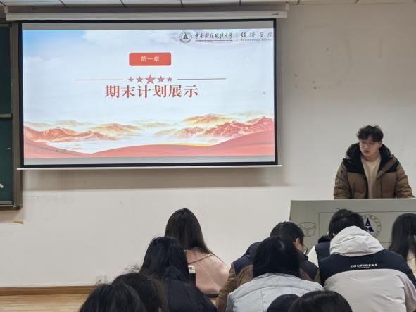 首先,聚焦期末复习计划,明确奋进目标:大会紧紧围绕期末复习计划这一核心主题展开,各班代表纷纷登台,详细阐述了各自班级的复习策略与目标规划,彰显出积极进取、严谨务实的学风。 经法2401班条理清晰地介绍了考试复习内容并展示了部分优秀的复习计划样本,为同学们提供了宝贵的借鉴范例。经统2401班凭借扎实的专业知识,分学科深入剖析备考方案。国商2401班也毫不逊色,着重强调了诚信考试的重要原则,体现了对知识与品德的双重重视。国商2402班别出心裁,直观形象展示同学们的目标,助力同学们找准自身定位,精准发力。国商2403班则展示了每位同学的个性化目标与复习计划,模拟考试、激励机制以及班内互助模式,成为该班计划的亮点,极大地激发了同学们的学习热情和斗志。