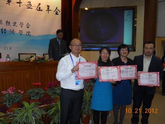 本次年会改选了学会领导机构,我校宋丽智副教授被选为中国经济思想史学会理事。至此,我校共有4位中国经济思想史学会理事,成为所有高校、研究院所中所占理事席位最多的单位。此外,大会还宣布了中国经济思想史学会第七届优秀科研成果的评选结果,我校张霞副教授的专著《民国时期“三农”思想研究》获著作类一等奖(一等奖共2位),宋丽智副教授的论文《20世纪30年代经济大萧条的东方回应》获论文类一等奖(一等奖共4位)。