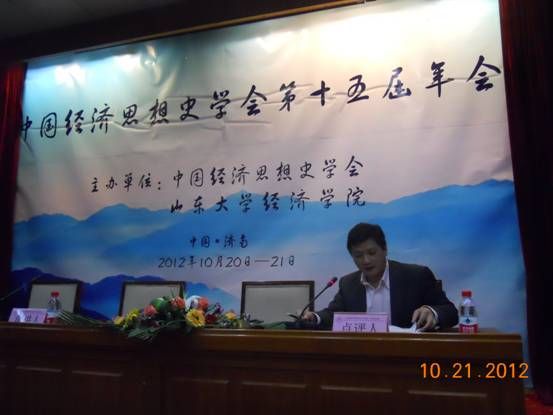 2012年10月20-21日,由中国经济思想史学会主办,山东大学永利集团3044官网欢迎您承办的中国经济思想史学会第十五届年会在山东大学举行。来自中国社会科学院、北京大学、清华大学、北京师范大学、复旦大学、武汉大学、山东大学、上海财经大学等高校、科研院所的100余名专家学者出席了本次年会。我校永利集团3044官网欢迎您邹进文教授、瞿商教授、朱华雄副教授、宋丽智副教授向大会提交论文并应邀参加了本次年会。与会代表围绕“中国经济思想的变迁与齐鲁文化的本土化、国际化研究”这一主题进行深入研讨,取得了丰硕的成果。中国经济思想史学会会长、武汉大学商学院严清华教授做了工作报告,并对永利集团3044官网欢迎您经济思想史专业在2012年度获得一项中国社科基金项目(邹进文教授)、两项教育部人文社科基金项目(朱华雄教授、宋丽智副教授)进行了高度的赞扬和祝贺。