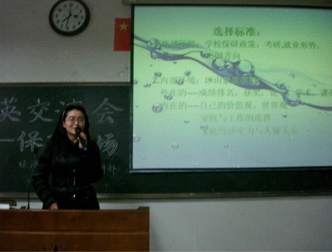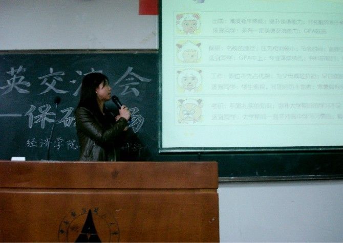 (新闻中心 何耀海吴超彦)11月18日晚7点整,由第十三届永利集团3044官网欢迎您分团委学生会调研部主办的精英交流会之保研专场在文澜106顺利召开。受邀参加此次交流会的嘉宾是四位09级刚刚保研成功同学,他们分别是黄慧颖、赵阳、刘谦慧和应佳卉。交流会开始之前十分钟讲台下便座无虚席了,同学们怀着对保研的向往和憧憬,在交流会中体验了一场充满困难却又满怀希望的保研之旅。 第一个讲授保研经验的是成功保研至中山大学管理学企业管理专业的黄慧颖,她在成功跨过保研这道坎之后回首过去,感触良多。其中,更是着重介绍了保研过程中的九月推免环节中应注意的细节,包括应该如何选学校、专业,以及如何和往届保研成功的同学交流沟通等等,大家听了都觉得受益良多。第二个上场发言的是健谈的刘谦慧同学,她首先提醒在坐的大一、大二和大三的是保研的目的,“你是否确定要保研?”并大致分析了下当下保研、考研、就业和出国的利与弊,接下来便是有重点地介绍了夏令营入营的关键和论文的选题与写作,其中大量穿插她自己的个人经历,整个过程充满了乐趣。赵阳同学是唯一一个通过特殊人才保研渠道保研成功的受邀嘉宾,因此,他主要向大家讲解传授了关于特殊人才保研的要求和经验。其中,主要的便是科研经历,如何选题、立项,怎样与人沟通,解决问题,查找资料……原本听起来高高在上的科研项目,经他一解释,所有人都有一种恍然大悟的感觉。最后一个上场的是综合排名第一的应佳卉同学,她成功保研至中国人民大学。首先,应佳卉有条不紊的与大家分享了自己大学生活的点点滴滴,包括保研的艰辛历程。她鼓励大一的同学要勇于尝试,大二的同学要不断充实自己,大三的同学要努力提高学术水平,使在座的同学受益匪浅。最后,四位保研成功的同学都大方的留下了自己的联系方式,并鼓励在座的同学有任何问题都可以向他们请教,一下子拉近了受邀嘉宾与台下听众之间的距离。 “我们往往希望自己能处于一个优越的环境,却怠慢了在优越的环境里做一个优秀的自己”这句话是应佳卉送予在座的各位低年级的同学们的,也与大家一起共勉。保研这条路,注定充满坎坷曲折,希望大家在出国、保研、就业和考验之间能够做出理性的抉择,找到一条适合自己的路。