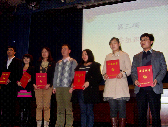 (新闻与网络技术部 吴昌盛 吴超彦)3月28日下午,我校2012-2013学年寒假社会实践表彰大会暨经验交流会在文泉楼举办。校团委和各学院团委书记老师作为嘉宾出席了此次表彰大会。 首先,进入大会第一项,全体起立,奏唱团歌。之后,校团委组织部常务部长黄晟宣读了此次社会实践的表彰决定,对上学期的社会实践开展及评选做了简明扼要的总结. 下面,颁奖正式开始.首先颁发的是“优秀组织奖”,由永利集团3044官网欢迎您、财政税务学院等六个学院获得,校团委周巍书记为其颁奖。紧接着,来自法学院的李司铎老师作为获奖代表对学院的社会实践工作做了详细的介绍。然后颁发的是“社会实践优秀成果奖”,校团委林晶晶老师为获奖代表颁奖。来自工商管理学院的“美丽中国小分队”作为代表进行了社会实践成果展示。他们从选题、团队构造等多方面,全面细致地介绍了调研过程,分享了宝贵的经验。最后校团委张艳芸老师为获得“先进个人奖”的获奖代表颁奖,来自统计与数学学院的张坤作为代表,诙谐幽默地分享了他在家乡宣讲十八大的心得体会。至此,我校上学期寒假社会实践表彰大会暨经验交流会圆满结束。