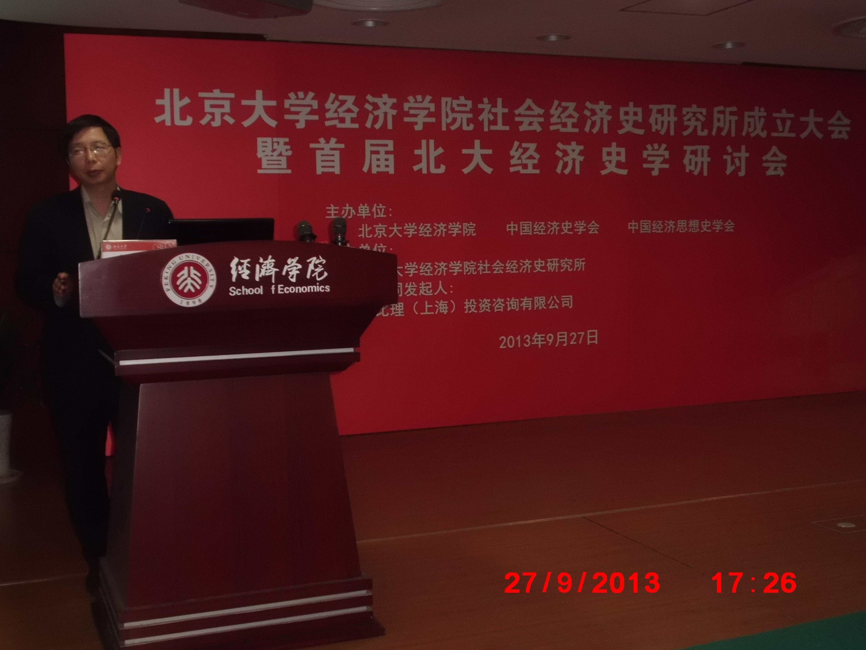 2013年9月27日,永利官网邹进文、瞿商、朱华雄、宋丽智、王爱君等教授一行应邀参加北京大学社会经济史研究所成立大暨首届“北大经济史学研讨会”。这次会议由北京大学永利集团3044官网欢迎您、中国经济史学会、中国经济思想史学会主办,北京大学永利集团3044官网欢迎您社会经济史研究所承办。中国社科院、北京大学、清华大学、复旦大学、南开大学、武汉大学等三十余所研究机构和高等院校的百余名知名学者参会,进行了激烈的思想交锋和深入的学术探讨。 永利官网院长邹进文教授与中国社科院钱津研究员、赵学军研究员、南开大学王玉茹教授并列被聘为会务顾问,并主持闭幕式。永利官网经济史研究中心为北京大学社会经济史研究所成立寄发了贺词。同时接到邀请的赵德馨教授、苏少之教授和赵凌云教授因事无法参加会议。从受邀请人数规模上看,永利官网经济史研究中心的研究团队已经得到了学术界的极大关注和肯定。