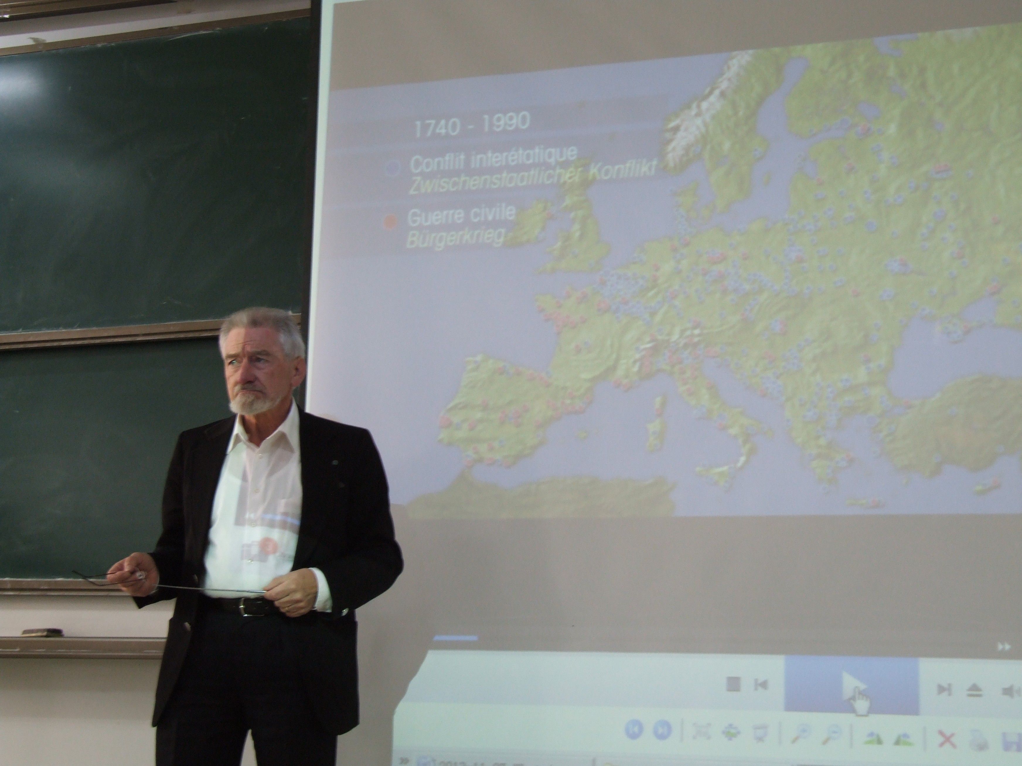11月27日上午,2012级国际商务专业学生在文泰220教室聆听了一场关于欧盟的形成、发展、作用机制及其问题的学术讲座,主讲者是来自德国萨尔州立大学的Edgar Werner Müller教授。为了能让中国学生尽量听懂略带乡音的英语,Müller教授以比较缓慢的语速从历史、地理、政策、文化和国家关系等方面详细地讲解了欧盟及欧元是在怎样的历史背景下建立/确立并逐渐完善的过程,系统地阐述了当前欧盟的整体发展状态和对欧洲地区的影响作用,以及欧盟的管理/运行机制。同学们非常认真地聆听了整场报告,并就同学们感兴趣的问题进行了热烈的讨论,对于中国学生流利的英语表达和对经济知识的广泛理解,Müller教授由衷地表示赞赏,并谦虚地表示自己不是经济学者,对于同学们提出的经济方面的问题无法给予回答。Müller教授这种坦诚的交流方式获得了中国学生的一致好感和钦佩。副院长罗良文教授的主持了本场讲座,院长助理金应华博士最后对讲座进行了简洁的英文总结,更好地帮助了同学们的理解和吸收。