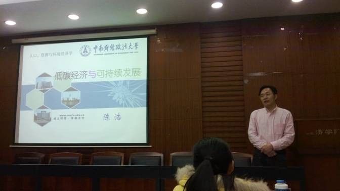 陈浩教授从介绍1987年“世界环境与发展委员会”发表的《我们共同的未来》入手,以系统的观点从生态、社会、经济三维度详细陈述可持续发展理念,说明了判定可持续发展的持续性、公平性、共同性“三原则”,结合世界经济社会发展历史分析了可持续发展观从起源、演进到正式形成的发展历程。陈浩教授以物理学物质能量守恒——热力学第一定律和第二定律作为理论依据分析低碳经济,阐述了可持续发展理念指导下以“三低三高(低能耗、低污染、低排放和高效能、高效率和高效益)”为主要特征的低碳经济含义、核心、特征、主要内容等;他还重点分析了低碳经济产生的背景和历史发展,指出全球气候暖化和能源危机是低碳经济产生的主要原因;同时,他通过比较分析生态经济、循环经济、绿色经济与低碳经济的联系与区别,说明低碳经济是落实可持续发展的最有效路径和“先锋”;陈浩教授还提出了排放控制对策、固定化对策和适应对策的低碳经济“三对策”,并就中国如何发展低碳经济分享了自己的意见建议。