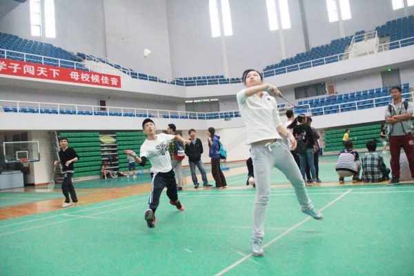 下午1时30分许,决赛拉开帷幕。男单8号场上陶雪枫对任仕其、女单10号场上邓俐对陈佳煜、混双9号场上陈桐阳与许薇对黄泰榕与石莹。其中,男单对打尤为激烈,只见羽毛球时而在两人间如电疾驰,勾动观众的心弦;时而轻擦于球网之上,引起球网的时时抖动。第三场快结束时,双方僵持不下,羽毛球高驰于空中,突然,任仕其抓住机会,纵身一跃,一个扣球“砰”地一声直击在球场角落,打得对手措手不及,赢得一片叫好,而任仕其也凭此拿下第三场比赛,从而成为男单冠军。同时混双决赛赛场上也上演着精彩的一幕:羽毛球穿梭在四人之间,时近时远,时高时低,相比之下,陈桐阳和许薇配合更为密切,夺得混双冠军。而女单赛场上邓俐则技高一筹,摘得桂冠。