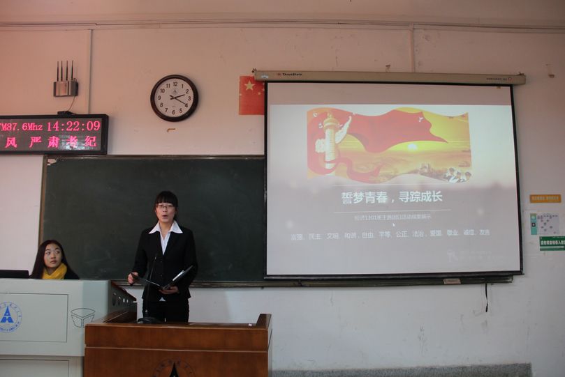 在激动人心的颁奖仪式结束后,经济1402班、经济1301班分别为大家进行了优秀团日活动展示。经济1402班团支书展示了经济1402班情动我心、志愿我行两大活动中的精彩花絮,大家在欣赏的同时,也感受到了经济1402班同学为了争取第一的不易。相对于大一新生的激情,经济1301班团支书则展示出高年级同学更成熟、更理性的一面。在经济1301班的ppt展示中,我们看到大二的同学灵活地运用新媒体平台进行了前期宣传;同时,该班同学通过与爱心超市合作筹集活动经费的方式也为其它获奖班级提供了借鉴。最打动人心的部分,则是经济1301班同学将自己对青春的理解、对梦想的憧憬写在孔明灯上,并一起在浙晓广场放飞。最后,大会在掌声中圆满结束。