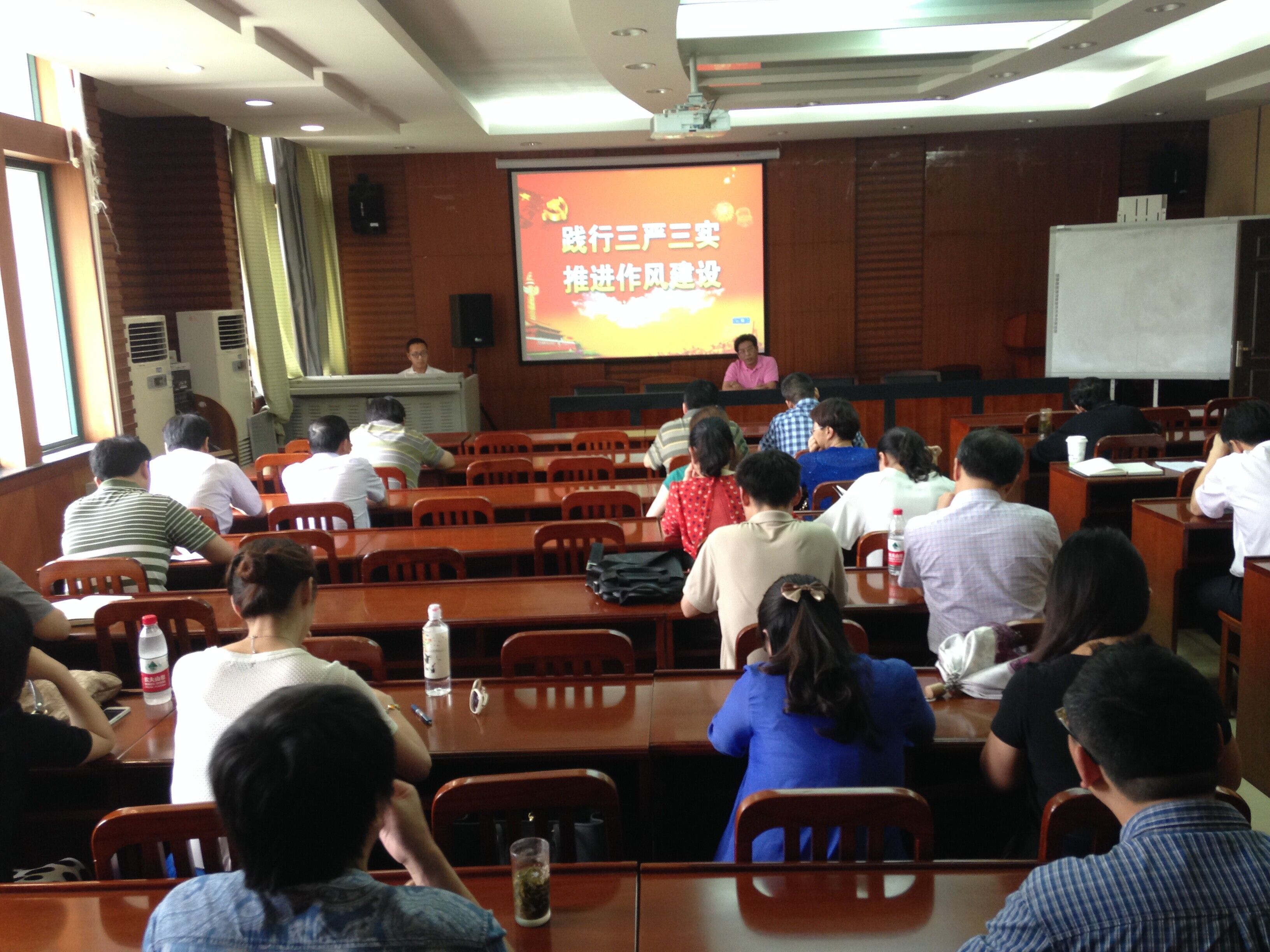 2015年6月11日下午14:30,永利官网响应学校党委的号召,在文泉楼206会议室举行了“三严三实”的专题党课,学院全体教职工及学生代表参加了党课学习,党课主讲人为永利集团3044官网欢迎您党委书记武身汉。 本次专题党课,武身汉书记主要针对三个主要问题给与讲解,一是“三严三实”的理论背景;二是“三严三实”的理论内涵;三是如何践行“三严三实”。