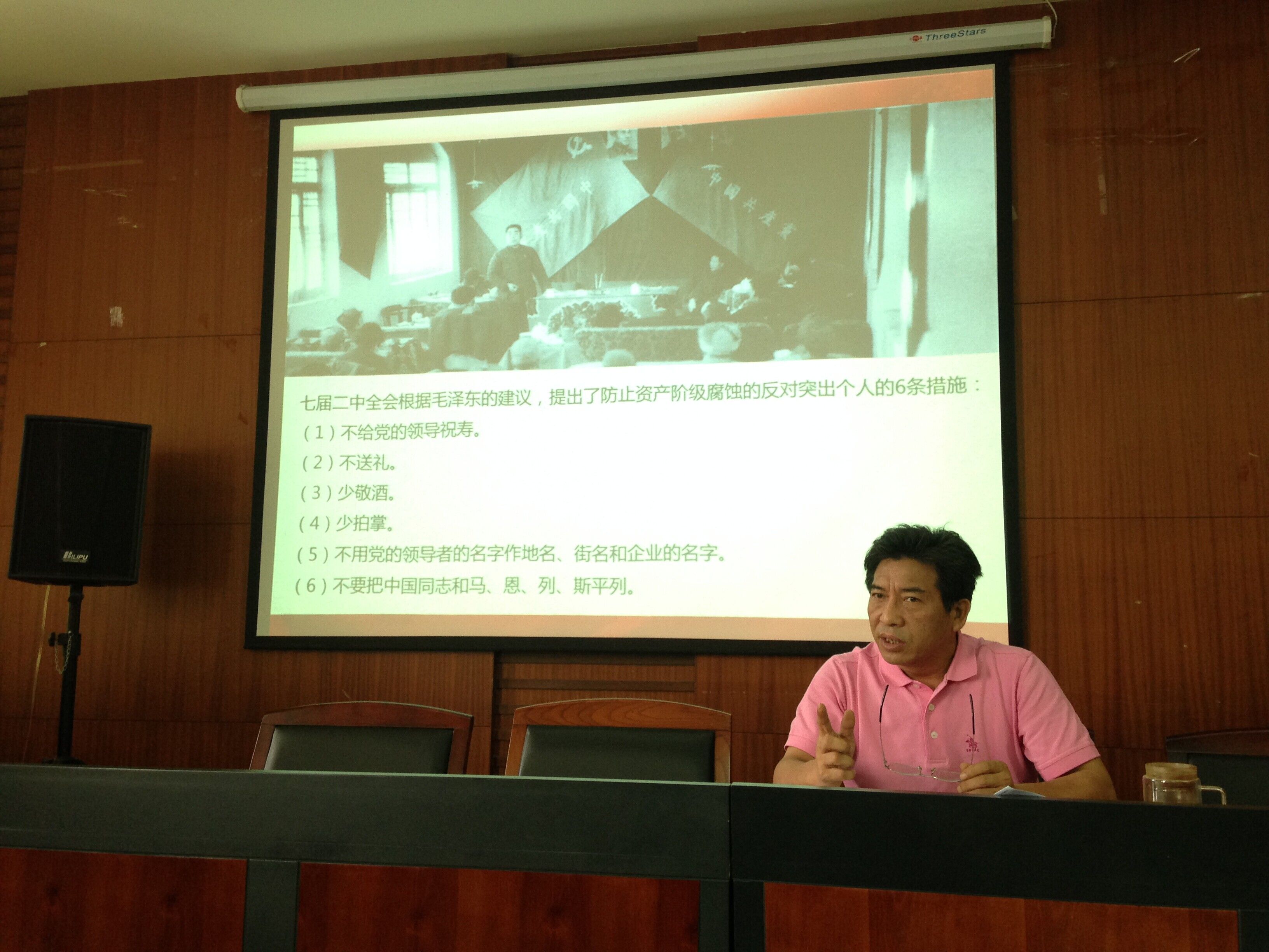 2015年6月11日下午14:30,永利官网响应学校党委的号召,在文泉楼206会议室举行了“三严三实”的专题党课,学院全体教职工及学生代表参加了党课学习,党课主讲人为永利集团3044官网欢迎您党委书记武身汉。 本次专题党课,武身汉书记主要针对三个主要问题给与讲解,一是“三严三实”的理论背景;二是“三严三实”的理论内涵;三是如何践行“三严三实”。