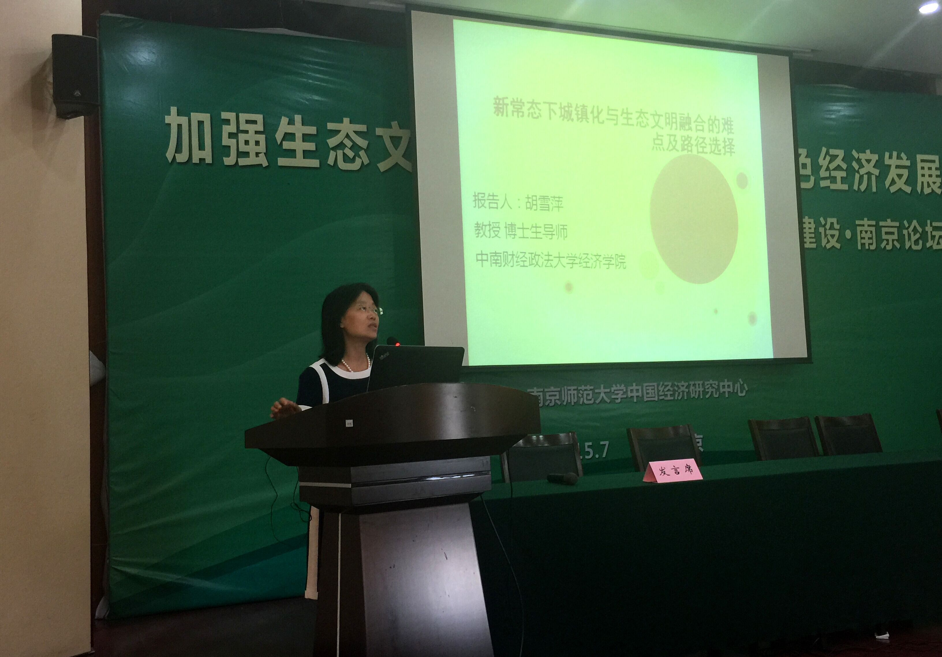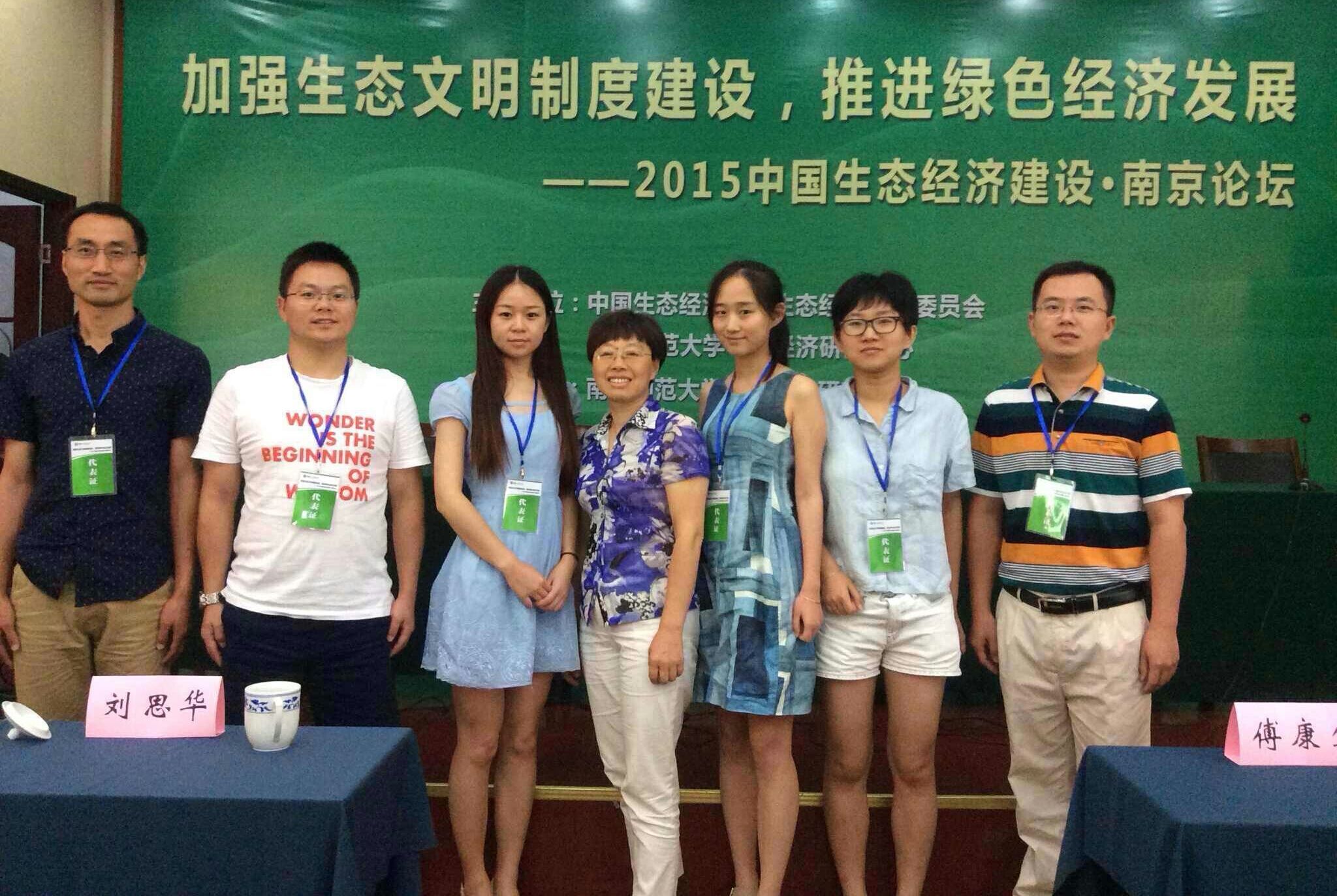 “2015中国生态经济建设·南京论坛”于2015年7月29-31日在南京成功举行。本次论坛的宗旨是:加强生态文明制度建设,推进绿色经济发展。本次论坛由中国生态经济学会生态经济教育专业委员会主办,由南京师范大学中国经济研究中心承办。本次论坛云集了国内从事生态经济学和生态马克思主义经济学研究的100来位专家学者,其中硕士博士占了五分之一。永利集团3044官网欢迎您汪成、陈峥、杜林远博士和陈芳、黄耶、江月亭、彭文军硕士参加了本次论坛。 永利官网胡雪萍教授于7月30日下午作了“新常态下城镇化与生态文明融合的难点及路径选择”的大会发言,提出了在新常态下应树立融合的发展理念,完善融合的制度,构建融合的评价体系,从而推动新型城镇化与生态文明的融合发展。