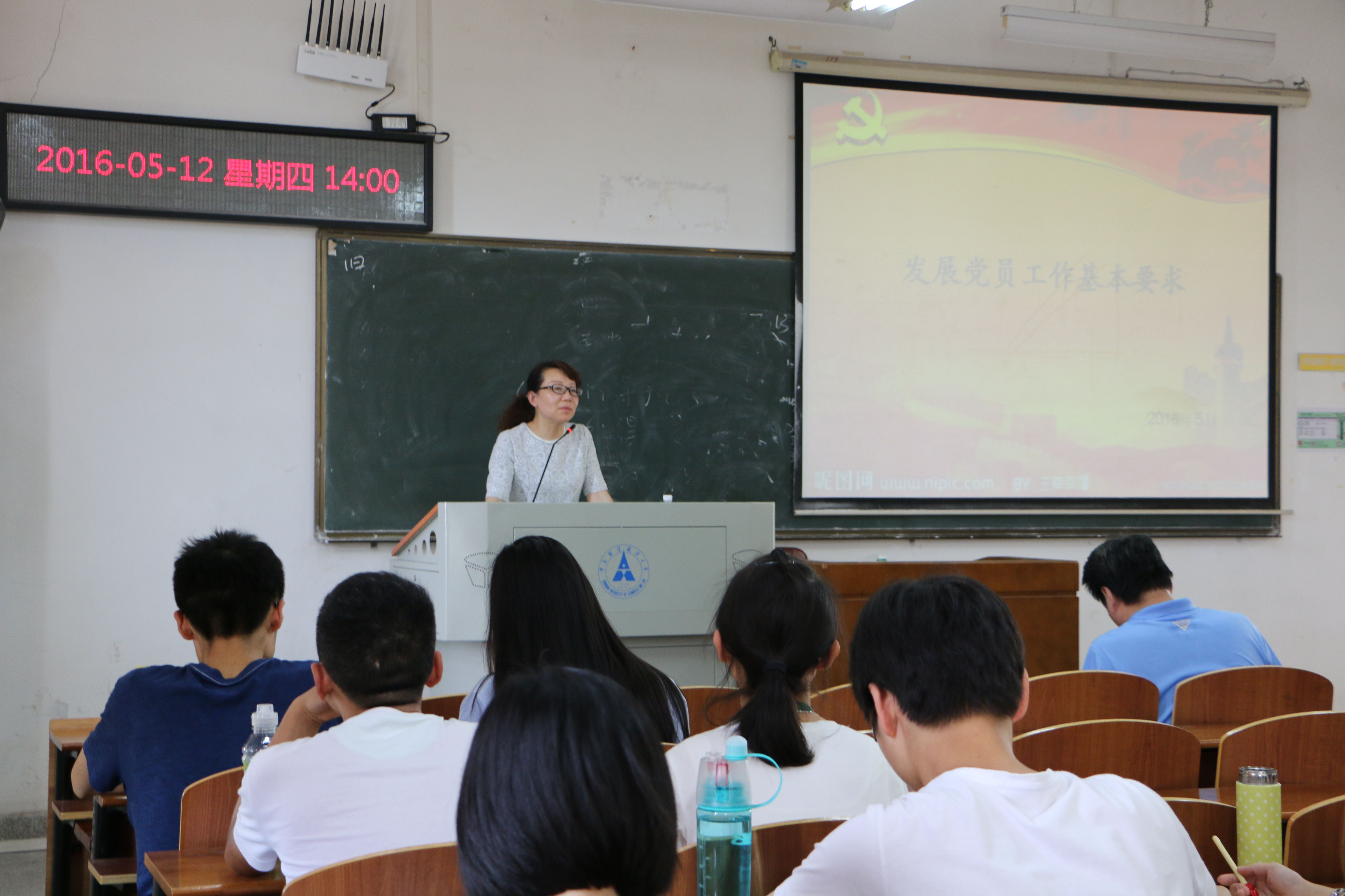 在谈到发展党员工作注意事项时,李明老师首先介绍了发展党员 中的几个基本原则:坚持党员条件的原则、保持党员质量的原则、坚持入党自愿的原则、坚持个别吸收的原则和“双过半”原则。接下来老师指出了发展党员工作中的几个“制度”:谈话制度、共青团组织(研究生导师)推优制度、发展党员培训制度、发展党员预审制度、发展党员(预备党员转正)审批制度、发展党员备案制度、发展情况(转正情况)公式制度和发展党员责任追究制度。此外,李明老师还介绍了“九个不发展”,党员材料的规范,审查入党材料需要注意几个时间节点的逻辑性及其他相关问题。