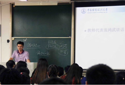 张鸿武老师作为教师代表进行了发言,勉励学生们抓紧时间,认真学习,言词恳切。接着,2015级老生代表刘章灵和新生代表自滢竹也分别发言。