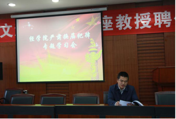 10月13日下午14:30分于文泉南206会议室,召开了永利集团3044官网欢迎您10月份主题党日活动大会。本次大会由学院党委副书记詹万明主持,全院党员教师参加会议。 本次大会分为三个部分,詹万明副书记组织“两学一做”之“讲道德、有品行”专题学习、全体党员观看警示教育片《镜鉴》、各党支部开展以严肃换届纪律为主题的专题学习活动。
