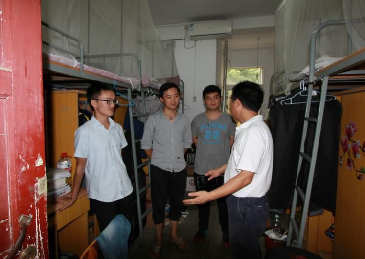 走进寝室,武书记向学生表示问候和祝贺,希望同学们毕业之后一切顺利。在询问了同学们的生活近况以及未来职业规划后,领导老师还提出自己的建议,叮嘱同学们在今后的学习工作中也要践行勤奋、刻苦的精神。对于工作还未落实的同学,领导老师鼓励他们不要气馁,要积极调整就业心态。最后,老师们不忘展开离校教育,希望同学们注意宿舍卫生,文明离校,并随时欢迎同学们回母校探望。