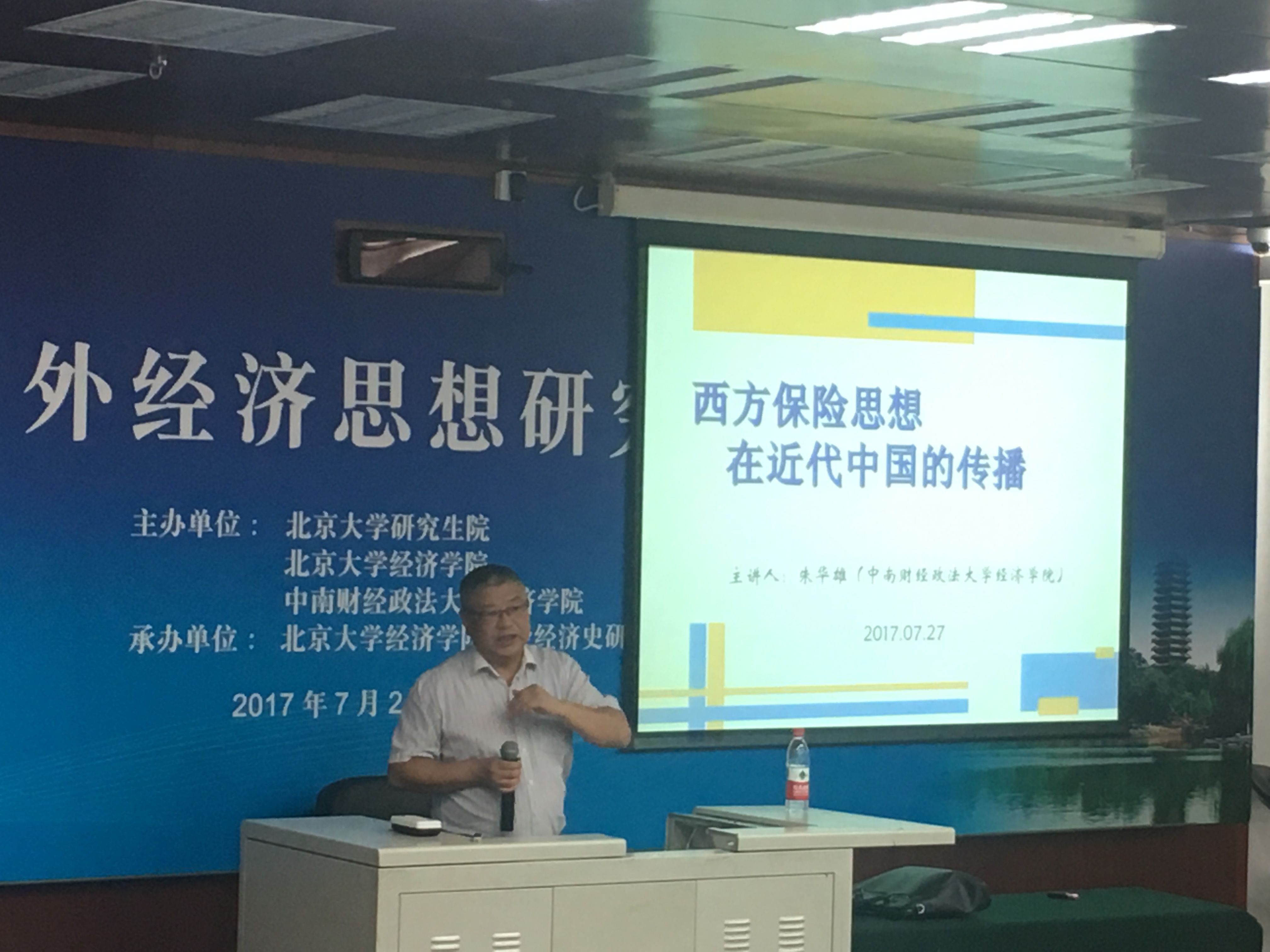 朱华雄教授正在讲授“西方保险思想在近代中国的传播”专题