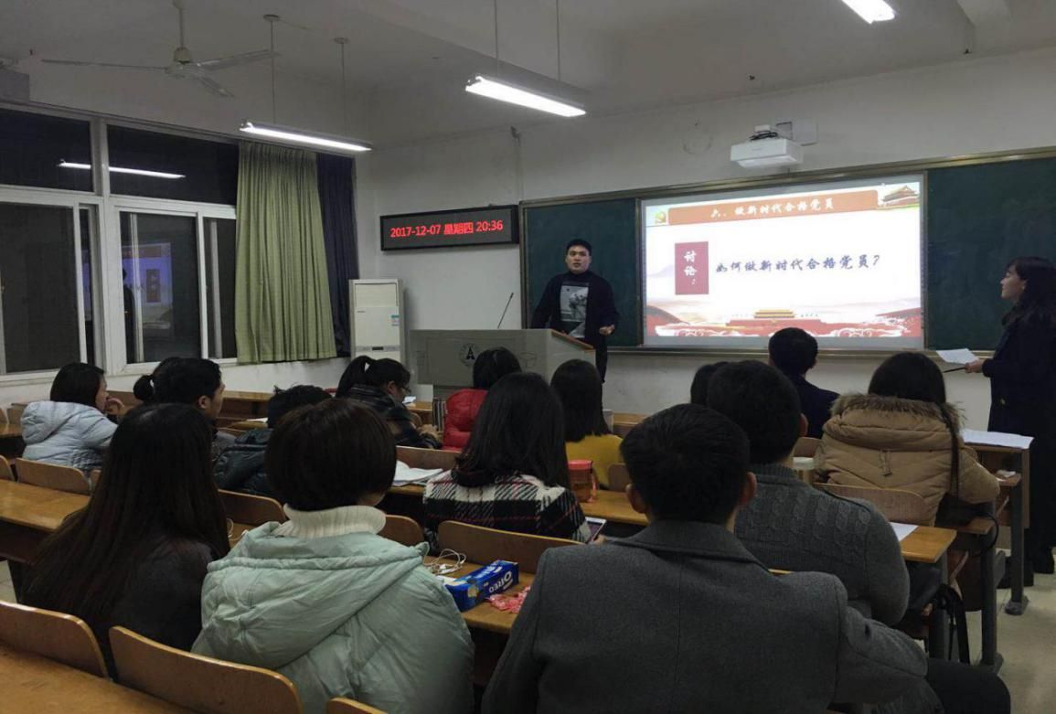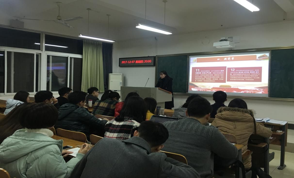 (通讯员 夏欢)2017年12月7日19点30分,永利集团3044官网欢迎您2016级研究生党支部12月主题党日活动于文添110室顺利举行,本次活动主题为“学‘新思想’,学‘新党章’,做新时代合格党员”。本次活动由支部书记刘怡君主持,支部共22名党员参加了本次活动。