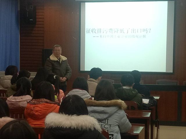2017年12月17日下午18:30,江西财经大学国际贸易学博士生导师组组长、学科带头人许统生首席教授应永利官网邀请,在文泉楼南206会议室作题为“征收排污费降低了出口吗?—来自中国工业企业的微观证据”的学术讲座。学院部分老师和同学们积极参加了此次讲座。