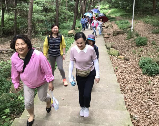 上午8点20分,老师们在文泉楼前集合,乘车前往八分山森林绿道。9点20分,老师们顺利到达八分山森林入口处,稍作休整后便开始了“丛林寻宝”比赛。本次比赛要求老师们按照八分山绿道导向牌依次前往步云亭、观景亭、怡然亭、子午石和慈云寺,每个亭子周围都有带有永利集团3044官网欢迎您文化元素的词语标志,老师们需要寻找“创建”“和谐”“一流”“经济”“学院”五个标志牌,并拍照发至微信群进行打卡。最先收集完五组词语的个人将获得第一名,活动结束后取前十名的老师们予以精神奖励。