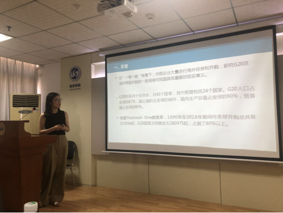 在会议平行论坛交流中,永利官网研究生万筱雯展示了论文《国家异质性与跨国并购区位选择》,该论文系杨波教授与多名学生合作撰写,文章实证分析了G20国家异质性对跨国并购区位选择影响的相关问题,指出地理距离维度与文化距离维度对跨国并购的区位选择具有显著负向影响,而经济自由维度对跨国并购区位选择具有正向影响,政府规制维度的影响与经济发展水平相关联,最后根据该结论对我国企业跨国并购决策提出了相关建议。