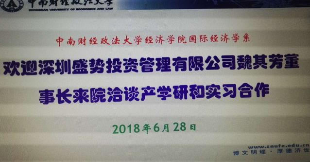 魏其芳董事长介绍了盛势投资情况和自己成长经验,并就资本市场、IPO上市流程和问题、业务团队打造、企业规范和改制等进行了交流,提出产学研合作的目标方向和形式,建立联合培养人才的实战训练平台。武身汉书记就校企联合培养学生作了情况说明,提出了合作培养学生的建议。詹万明副书记非常重视校企合作对本科生的培养,作了相应的发言。陈浩老师介绍了永利官网情况和学生实习要求和安排计划,感谢深圳盛势投资管理有限公司提供的实习机会和产学研合作平台,提出逐步发展合作的建议。各位指导老师就加强校企合作,拓宽合作渠道、联合培养学生也与企业家们进行了商谈。校企双方就合作平台建设、项目设立、实战训练、联合培养等方面达成意向。