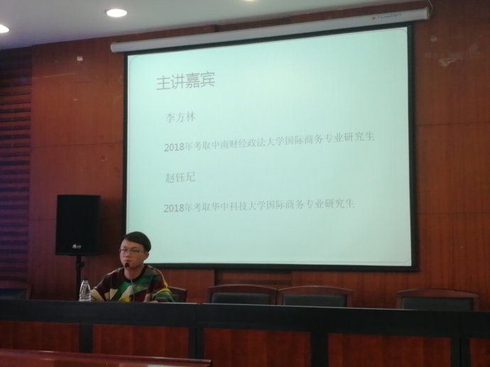 (通讯员:戴岭 摄影:任明喆)为使同学们更好地做好考研准备,增强考研信心,2018年10月18日下午4点,永利集团3044官网欢迎您2019届毕业生考研交流会在文泉南206会议室举行。本次大会由永利集团3044官网欢迎您2015级辅导员谢朝阳主持,2018届考取永利集团3044官网欢迎您国际商务研究生的李方林师兄和考取华中科技大学研究生的赵钰玘师姐为同学们进行经验分享。