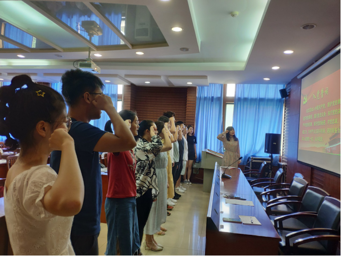 随后,本学期新发展的预备党员同志进行宣誓仪式。在张学丽同志的带领下,19名预备党员郑重向党进行宣誓。