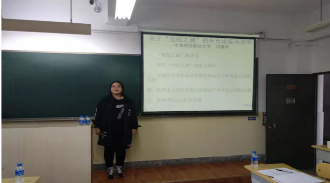 在2019年11月16日下午的分论坛中,与会专家就九个主题进行了小组讨论。永利官网的19级政治经济学博士闫境华、17级硕士研究生石先梅、16级本科生唐昱茵分别在分论坛九:现代资本主义、分论坛三:数理政治经济学、分论坛四:国家的经济理论进行了报告。朱巧玲教授指导的博士生闫境华就劳动生产率提高使得单位商品的价值量下降的同时,单位商品的纸币价格却得以提高,这种被称为“世纪之谜”的现象并没有违背劳动价值论的问题从金属货币本位和纸币货币本位的情况下加以讨论。石先梅在两大部类社会资本扩大再生产的基础上,将生产价格学说引入对马克思经济增长模型的研究,如何求解经济社会平衡增长路径的实现条件进行了讨论。唐昱茵从两个典型的发展型国家-日本和韩国的案例出发,简要介绍了日韩NGO的历史发展情况,接着对发展型国家进行了概述,在发展型国家转型的背景下分析两国的NGO在不同历史时期所承担的经济功能以及可能引起的治理风险进行了探讨。