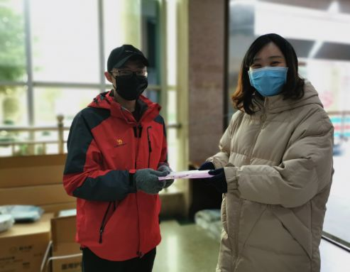 永利集团3044官网欢迎您值班辅导员周琼给学生发放口罩