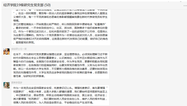 还有一些同学结合疫情期间的感受、结合党员身份,从多个角度论述了我们应该如何坚持总体国家安全观。