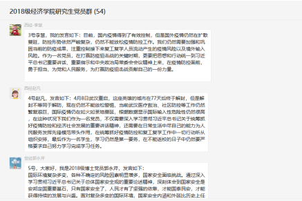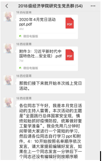 2020年4月9日下午15点30,永利集团3044官网欢迎您2018级研究生党支部开展了4月份党日学习活动,主题为“全面践行总体国家安全观,慎终如始抓好疫情防控,统筹做好复工复学准备”。由于疫情的原因,本次党日活动采取线上开展的形式,由雷菁主持,全体支部党员参与。