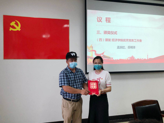 (院党委副书记詹万明同志为“优秀党务工作者”获得者颁奖)