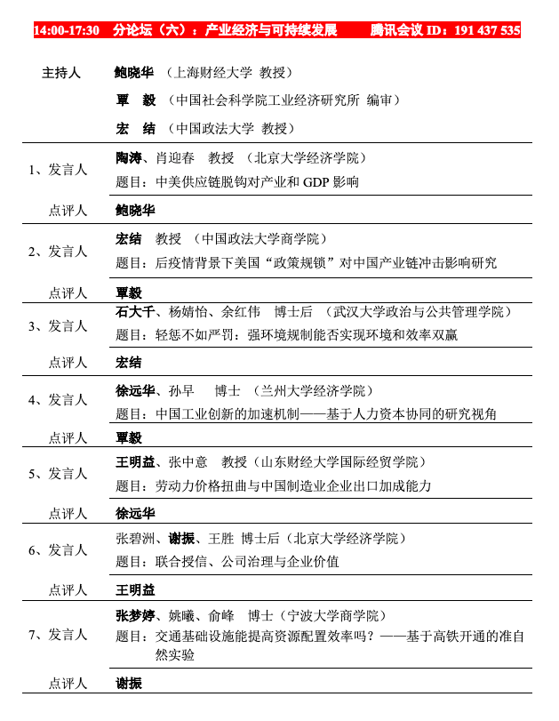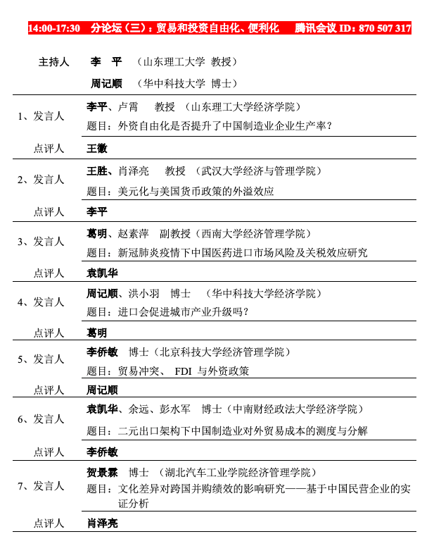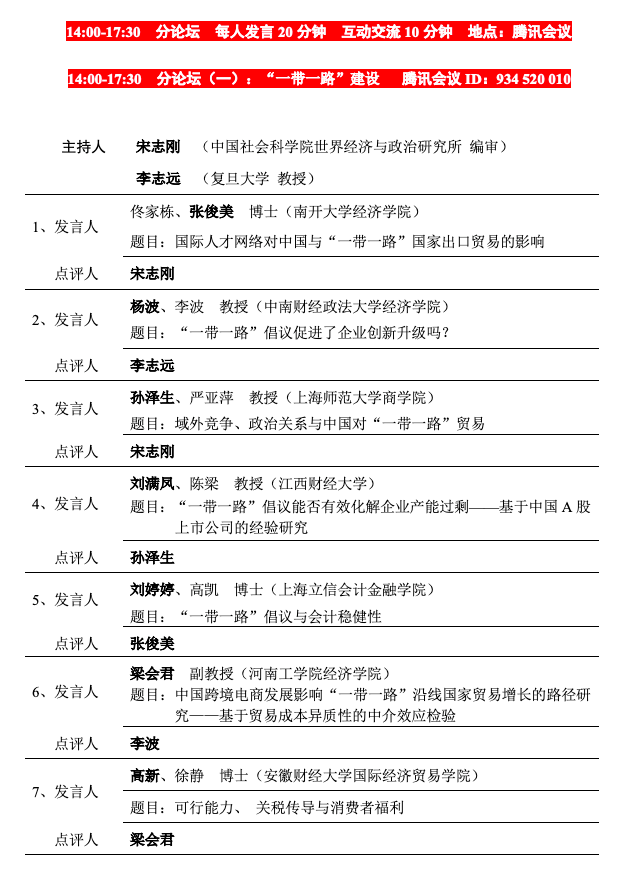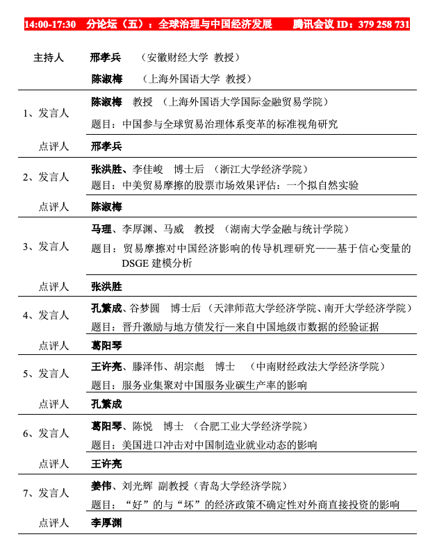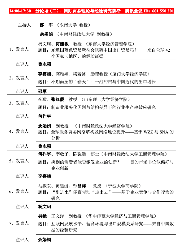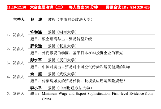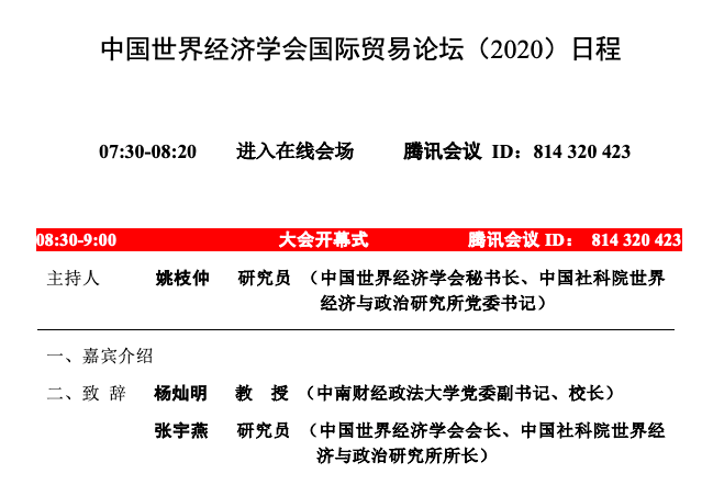 中国世界经济学会国际贸易论坛(2020)