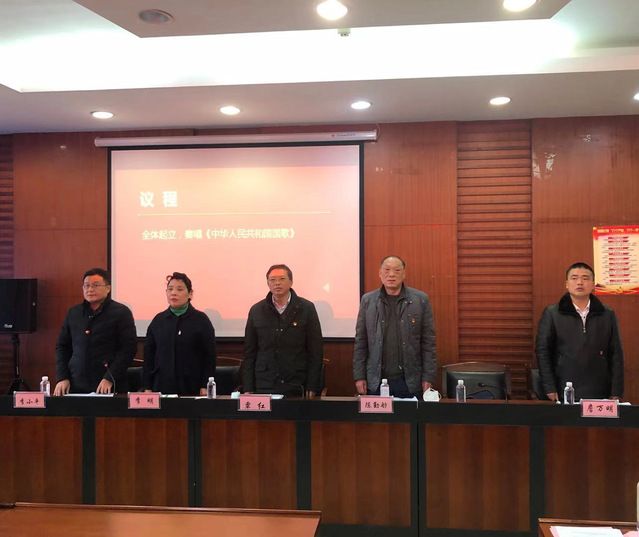 在雄壮的乐曲声中,大会正式开始。全场起立,奏唱《中华人民共和国国歌》。