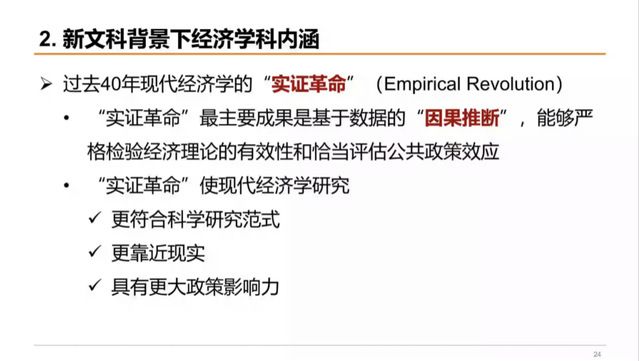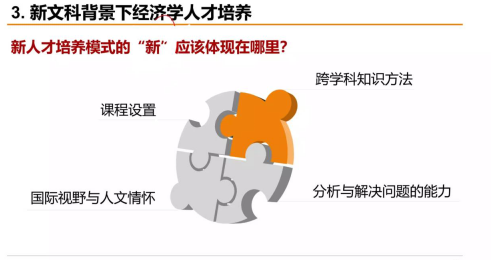 接下来洪教授就新文科背景下经济学科的内涵和新文科背景下经济学人才的培养两个方面进行了讲述。