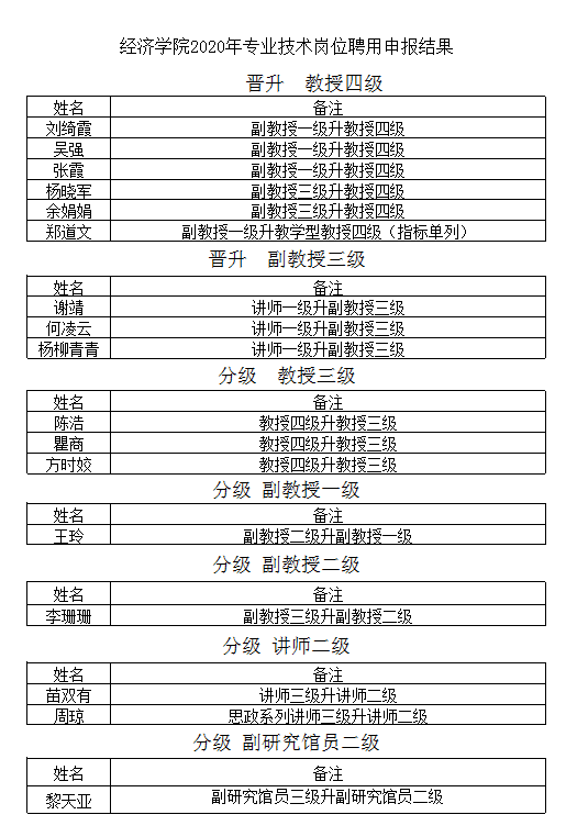 按照《关于开展2020年度专业技术岗位聘用工作的通知》的相关要求,学院对申报岗位晋升、分级资格审查合格的教职工进行了思想政治评价,人才培养综合评价,教学评议,学术水平评议,学院岗位聘用工作小组同意以下人员申报,报人事部审核。