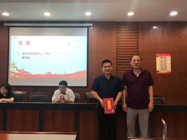 (永利集团3044官网欢迎您党委书记陈勤舫为“脱贫攻坚先进个人”詹万明颁奖)
