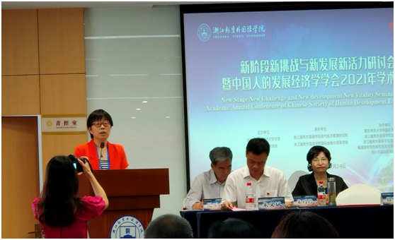 会议首先由浙江越秀外国语学院校长徐真华代表学校致欢迎辞,著名经济学家、中国•人的发展经济学学会会长、博士生导师、南京师范大学二级教授许崇正致开幕辞,代表学会向承办本次学术年会的浙江越秀外国语学院表示感谢,并就“人的全面发展理论引领中国特色社会主义建立,形成和发展”发表了主题演讲。中国生态经济学会生态经济教育专业委员会副会长兼秘书长、我校永利集团3044官网欢迎您教授高红贵老师代表中国生态经济学会生态经济教育专业委员会致辞,热烈祝贺2021中国•人的发展经济学学术年会顺利召开。