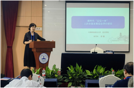 朱巧玲教授作了题为“新时代‘五位一体’人的全面发展综合评价研究”的主题发言,在以人民为中心的发展思想的指导下,从经济、政治、文化、社会、生态文明五个维度出发,构建“五位一体”人的全面发展综合评价体系,并针对新时代推进人的全面发展提出了切实可行的对策和建议。
