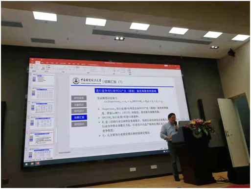 李小平院长作为特邀嘉宾出席论坛开幕式,并在大会上做了题为《进口竞争与企业环保行为》的主题演讲,就“进口引致的竞争效应是否会促使企业减少污染排放”这一问题进行了详细分析。