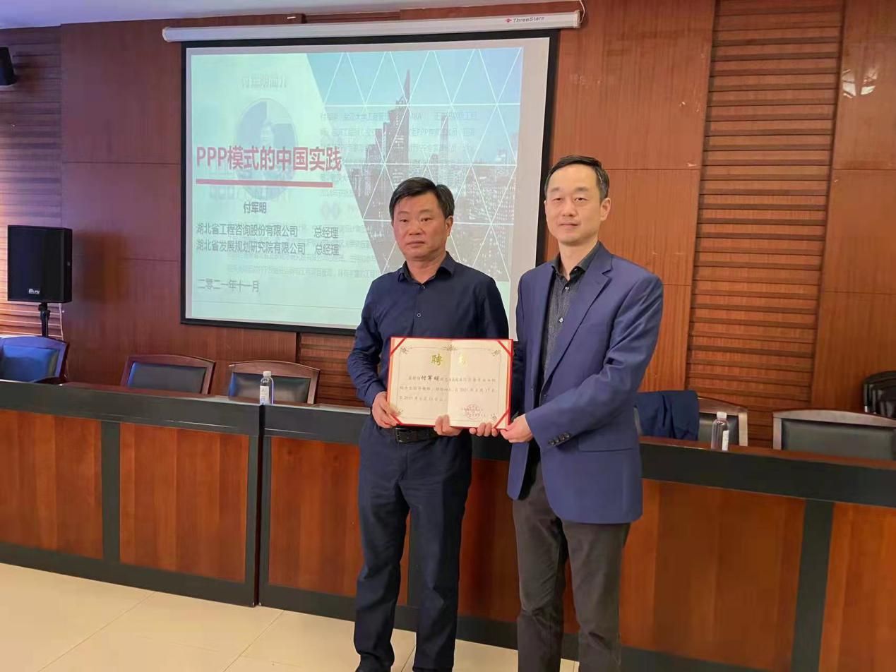 2021年11月3日15:00,永利集团3044官网欢迎您特邀湖北省工程咨询股份有限公司总经理、湖北省发展规划研究院有限公司总经理付军明先生,为同学们作了一场题为“政府与社会资本合作(ppp)模式在中国的实践与发展”的讲座,让同学们受益匪浅。同时,学院聘请付军明先生作为国际商务专业校外硕士生导师,在社会实践方面对国际商务学子提供指导和帮助。