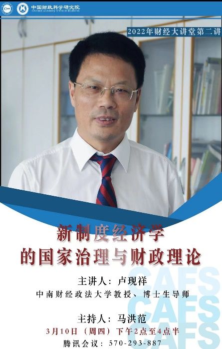 (通讯员 王素素)3月10日下午,永利官网卢现祥教授受中国财政科学研究院邀请,为其师生开展了一场以“新制度经济学的国家治理与财政理论”为主题的学术讲座。