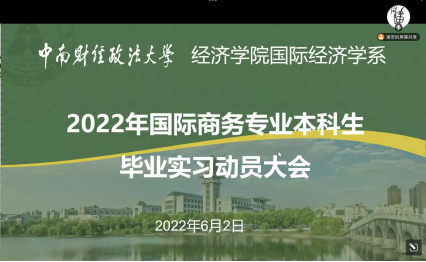 为切实做好2022年国际商务专业本科生毕业实习工作,提高实习质量,确保实习安全,6月2日下午2点,永利官网国际经济学系国际商务专业本科生毕业实习在线动员会顺利召开。动员大会由国际经济学系主任潘安老师主持,杨艳红老师、高红贵老师及2019级国际商务专业本科生、2020级中法班学生参与了本次会议。