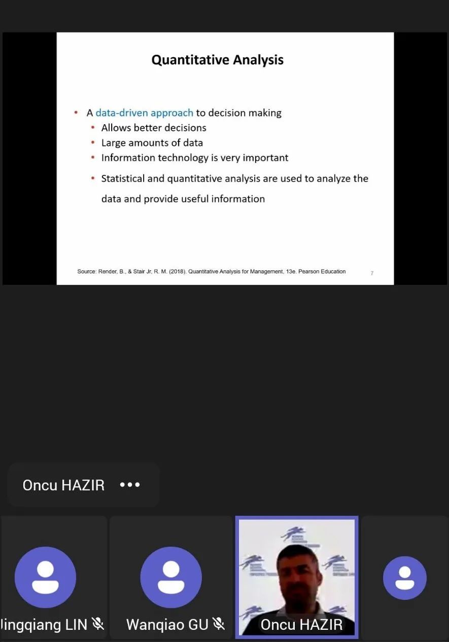 HAZIR Oncu教授认真负责,上课会主动和同学们互动,大大提高了上课的积极性。他的课程内容主要是从理论方面介入,讲授了Data analysis的一些专业知识。