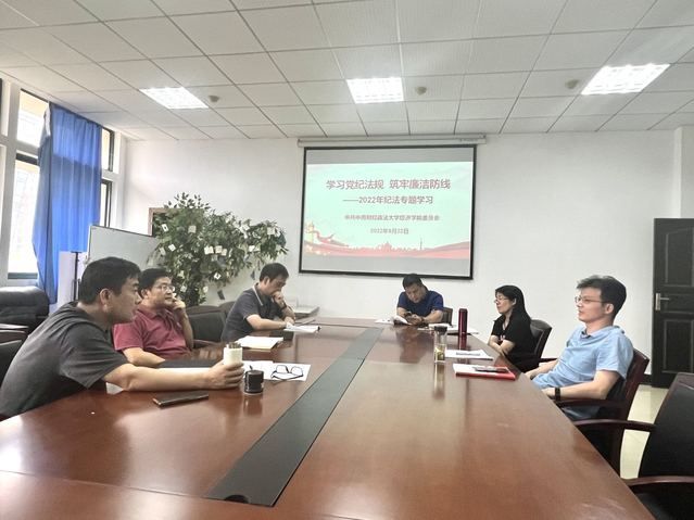 9月22日下午,永利集团3044官网欢迎您党委中心组开展主题为“学习党纪法规 筑牢廉洁防线”的纪法专题学习。院党委中心组围绕党章和《中国共产党纪律处分条例》、《中华人民共和国监察法》及其实施条例、《中华人民共和国公职人员政务处分法》等党纪法规开展重点学习和集中研讨。