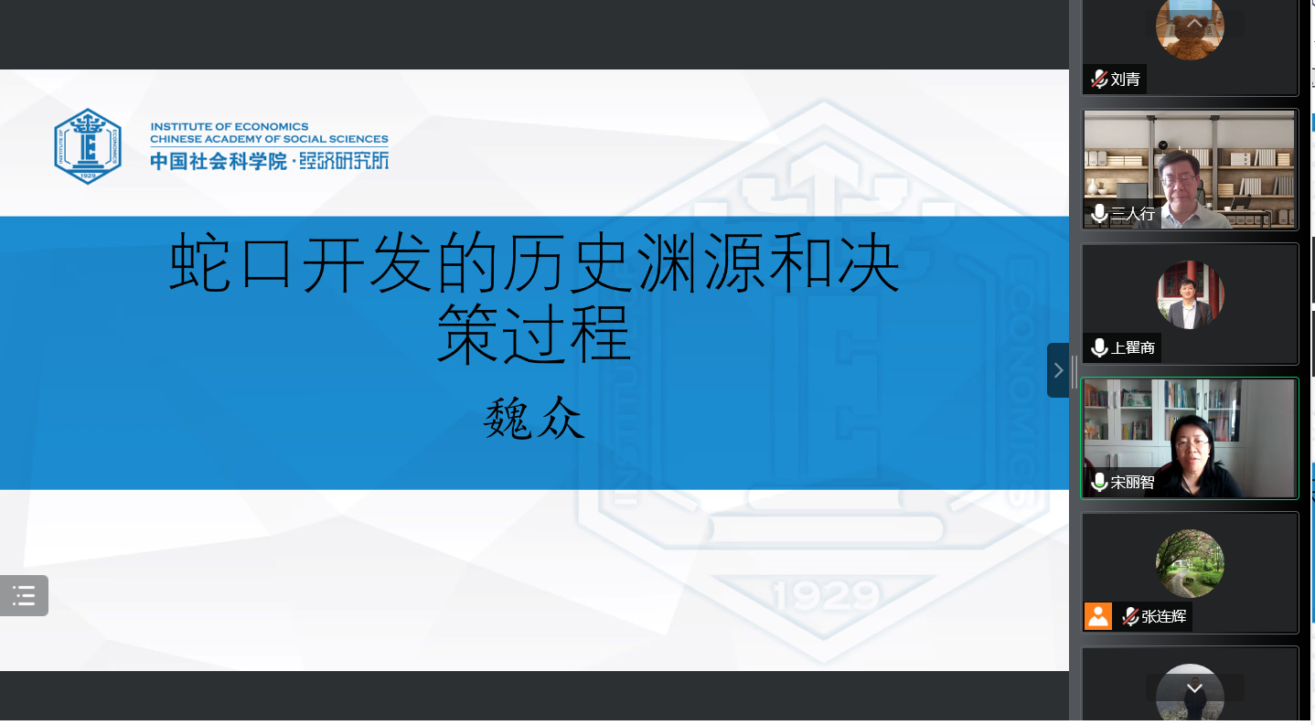(通讯员 刘青)9月24日上午,中国社会科学院经济研究所魏众研究员应永利官网邀请,做了一场题为“蛇口开发的历史渊源和决策过程”的线上讲座。讲座由永利集团3044官网欢迎您副院长宋丽智教授主持。