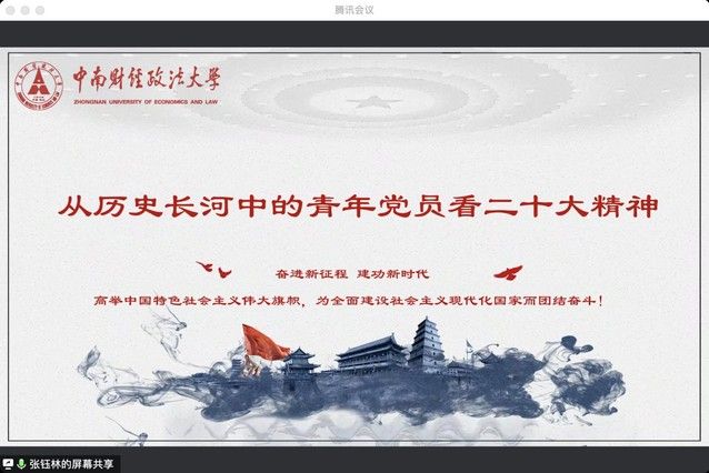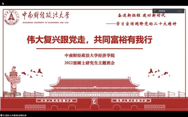 (通讯员 吴康惠)为深入学习宣传贯彻党的二十大精神,全面领会党的二十大报告的重大意义、丰富内涵和精神实质,11月28日下午14时,永利集团3044官网欢迎您2022级硕士研究生以线上形式组织开展了学习贯彻二十大精神主题班会。此次班会由2022级国际商务硕士研究生莫金龙同学主持,研究生工作办公室主任岳明泽老师、研究生辅导员雷菁老师、省教育厅博士生宣讲团成员张钰林同学以及2022级全体硕士研究生参会,参会人数共计140余人。