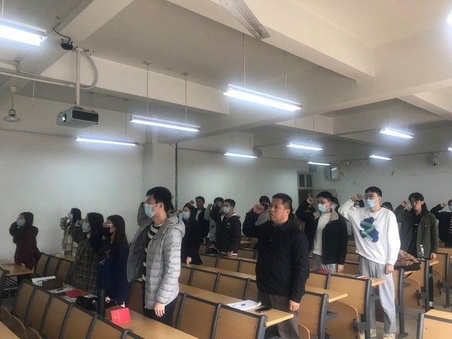 会议开始,由王雨濛同志组织支部成员重温入党誓词并带领全体党员温习党章内容,让各位党员对党章有更深入的理解。