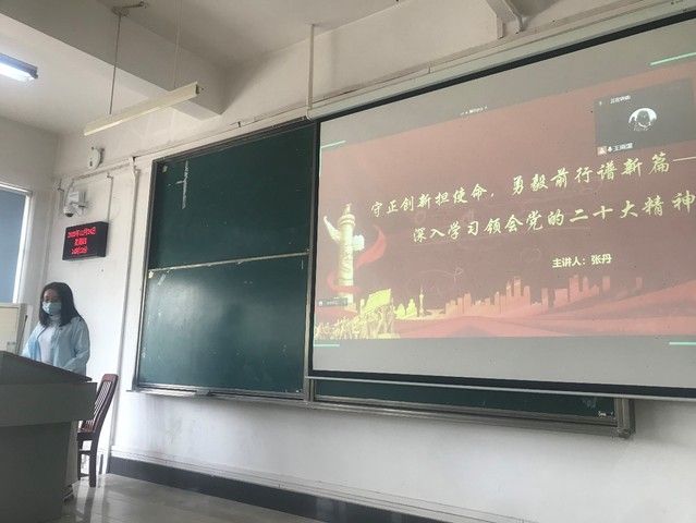 会议第二项,支部组织委员张丹带领大家学习题为《守正创新担使命,勇毅前行谱新篇——深入学习领会党的二十大精神》的主题党课。张丹同志分享结束后,王雨濛、张钰林等同志也分享了自己的所感所想,纷纷表示要继续更加深入学习二十大精神,为新时代新征程努力。