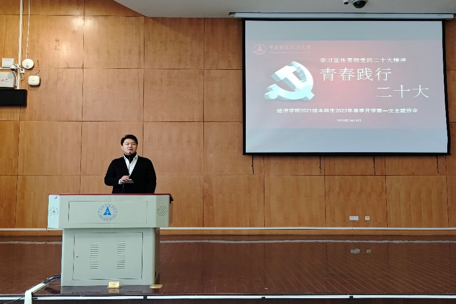 (学生记者 王学斌 摄影 郭宇航)新学期,新气象,为进一步加强学习宣传贯彻党的二十大精神,帮助同学们更快、更好适应新学期的到来,尽快恢复学习状态,永利集团3044官网欢迎您在全院本科生中开展“青春践行二十大”主题教育系列活动。 2023年2月19日下午,2021级本科生率先在南湖校区文泰楼321室召开了主题班会, 2021级本科生辅导员陈远瞻老师主持会议,2021级本科生全体到场参会。