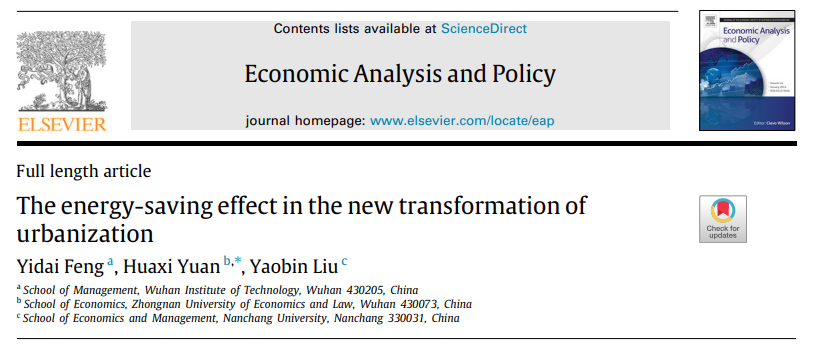 2023年3月,永利官网教师袁华锡副教授作为通讯作者的合作论文《The energy-saving effect in the new transformation of urbanization》被经济学国际知名期刊《Economic Analysis and Policy》接收并正式发表。