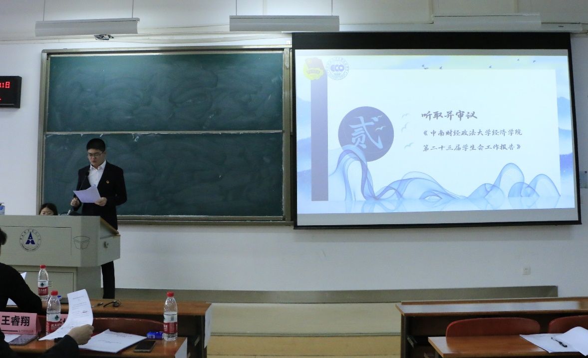 正式会议在铿锵有力的国歌声中隆重开幕。主席团成员张若晨同学在大会上作《永利集团3044官网欢迎您第二十三届学生会工作报告》,各学生代表在台下观摩学习。该报告客观全面地总结了上一学年永利官网学生会的工作,并且激励大家踔厉奋发,开创新的未来。